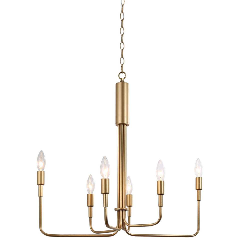 Modern Farmhouse Chandelier 6-Light Brass Gold Candlestick Chandelier Foyer Island Pendant Light