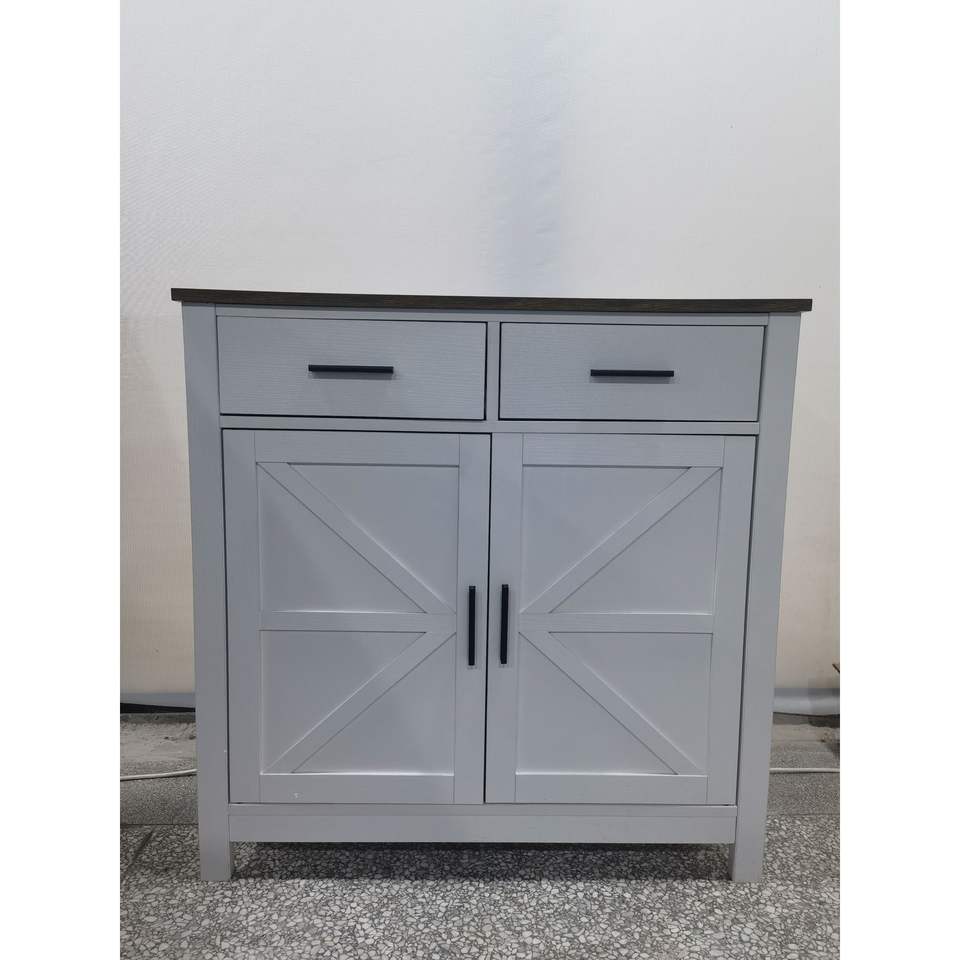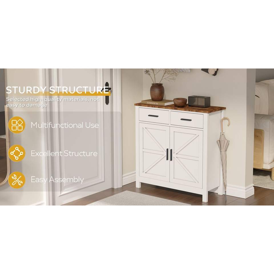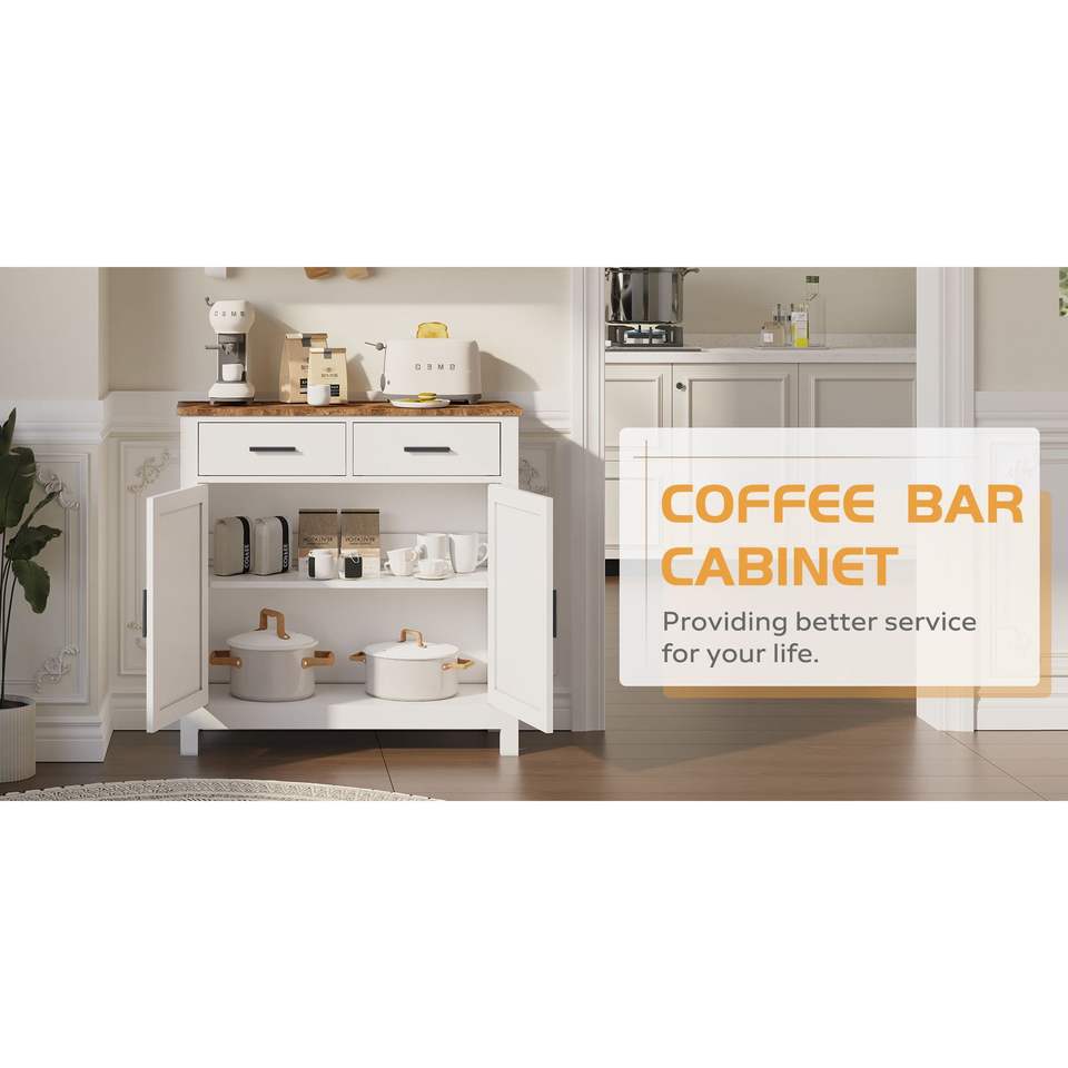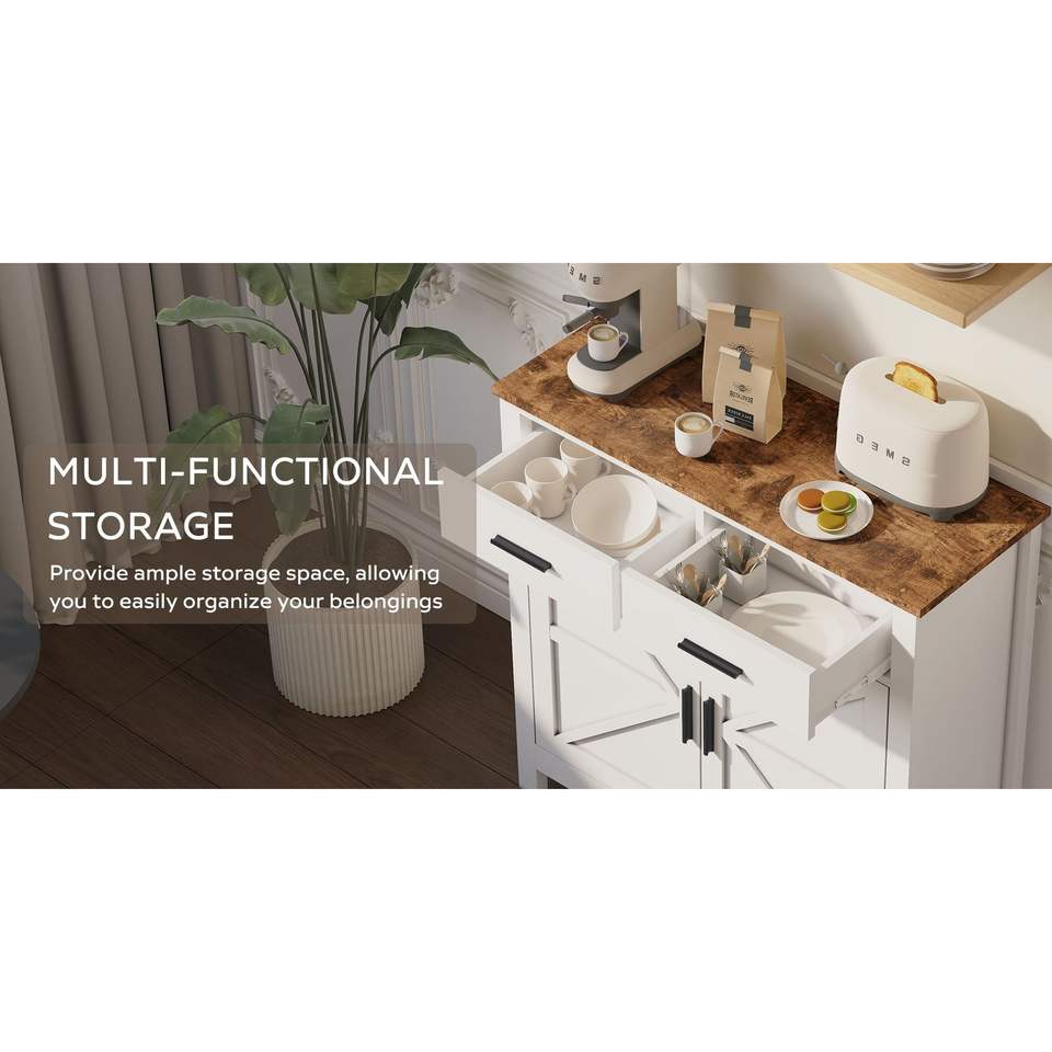 Mobile da Cucina Moderno Stile Fattoria con 2 Cassetti e 2 Ante, Credenza da Terra per Caffè con Funzionalità Buffet