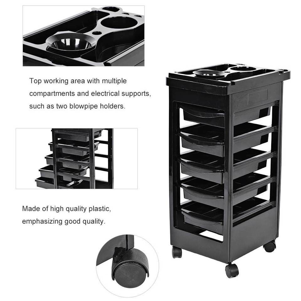 Carrello da Parrucchiere Moderno a Cinque Livelli con Ciotola per Tintura e Supporto per Asciugacapelli, Carrello Mobile per Salone di Bellezza con Rotazione a 360 Gradi