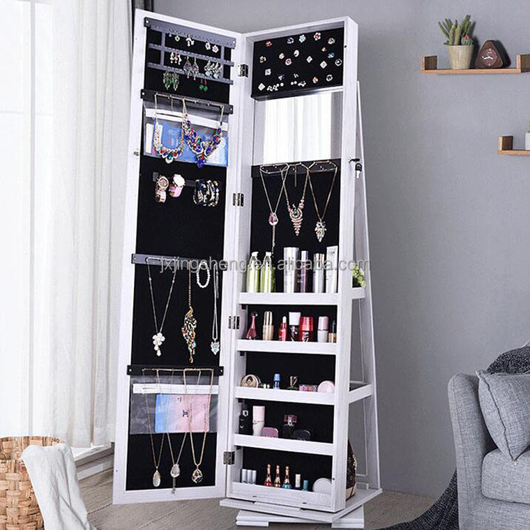 Modern Free standing Swivel wooden Jewelry storage Cabinet with Mirror