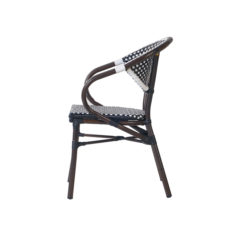 Modern French Bistro Aluminum Outdoor Dining Rattan Garden Table Chairs for Hotels Schools Halls Farm Houses