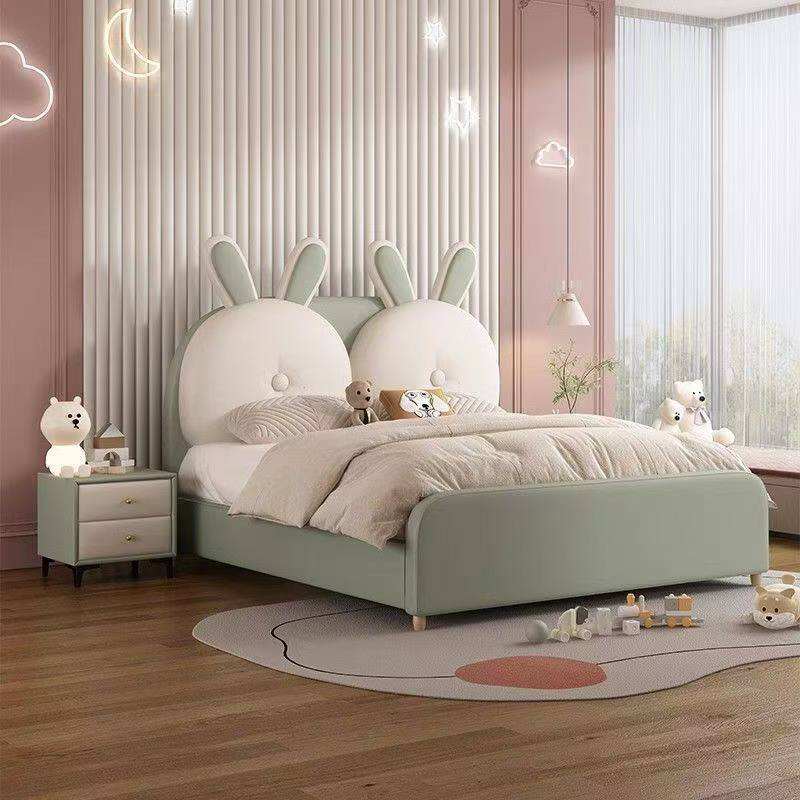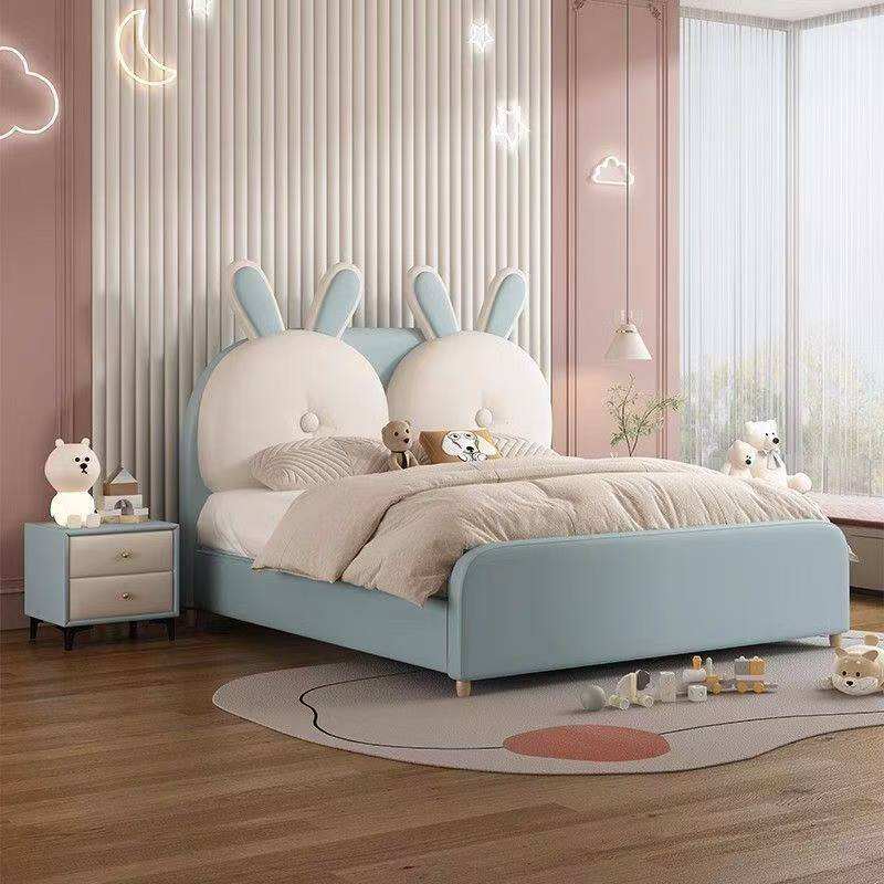 Letto per Bambini Moderno in Stile Francese con Design Semplice e Testiera Imbottita, con Vano Contenitore