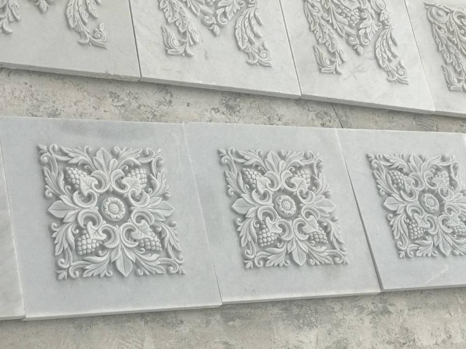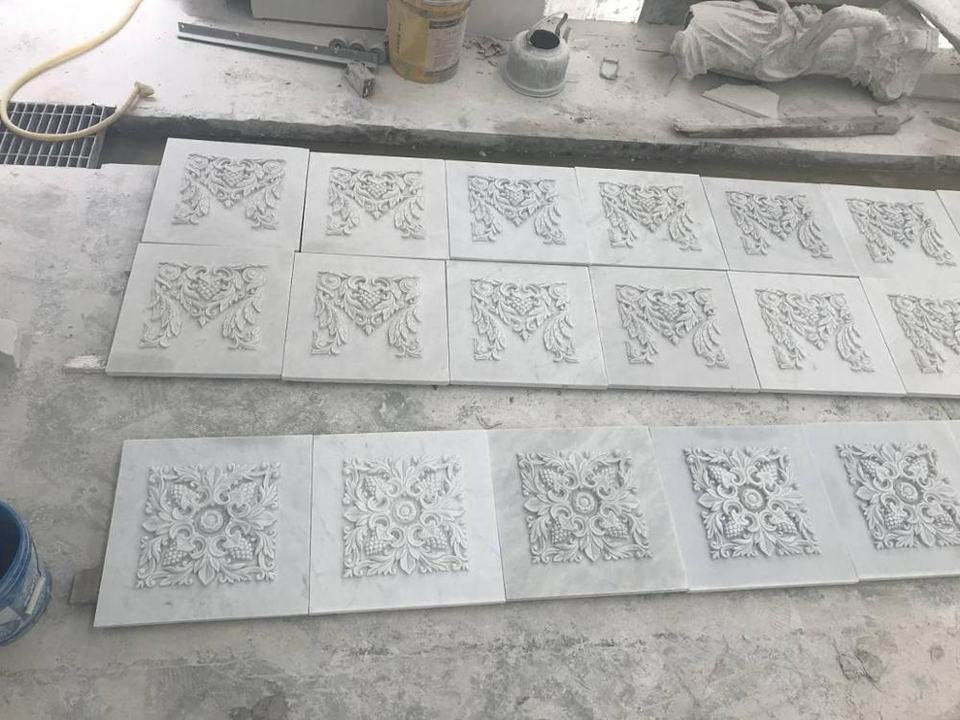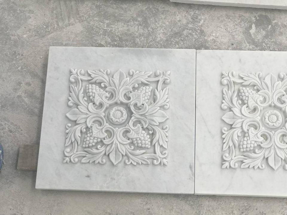 Modern French Style Carved Natural Stone Carving Flower Statue Marble Wall Bas Relief Sculpture