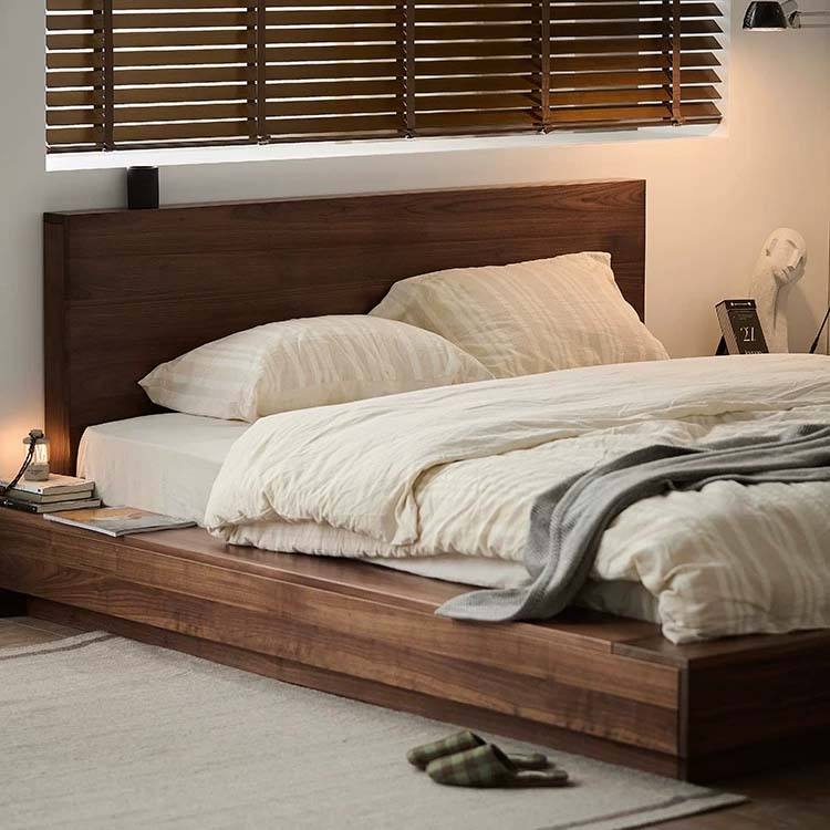 Letto matrimoniale moderno in legno, stile nordico, con contenitore, bassezza giapponese, tipo Tatami
