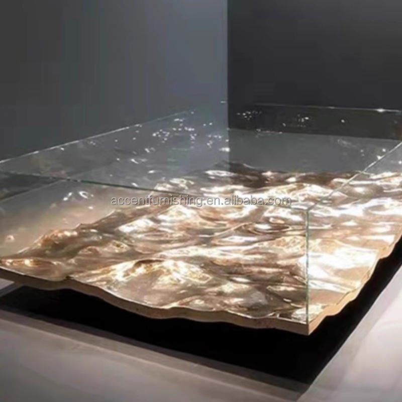 Modern Glass - Topped FRP Coffee Table Mountain - Inspired Design with Sleek Glass Surface Interior Furniture Design