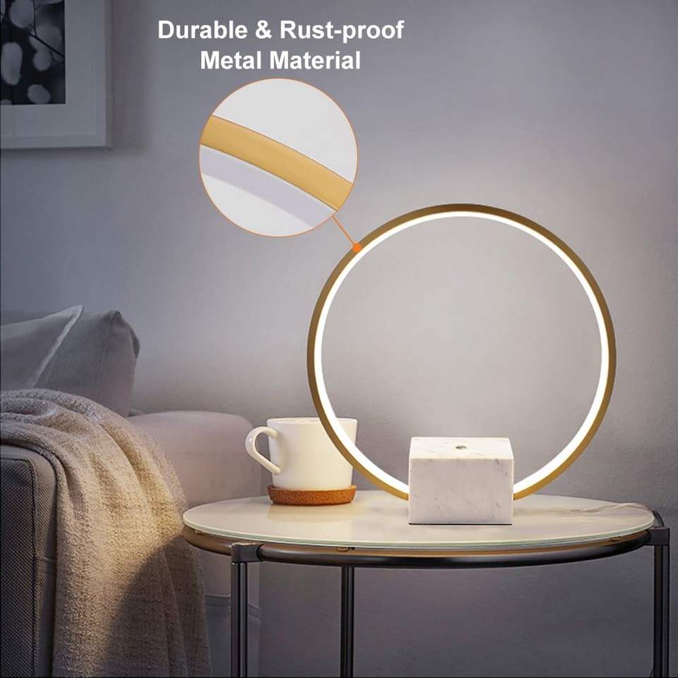 Lampada da tavolo moderna a cerchio a LED in oro con Base in marmo bianco elegante decorazione per la casa