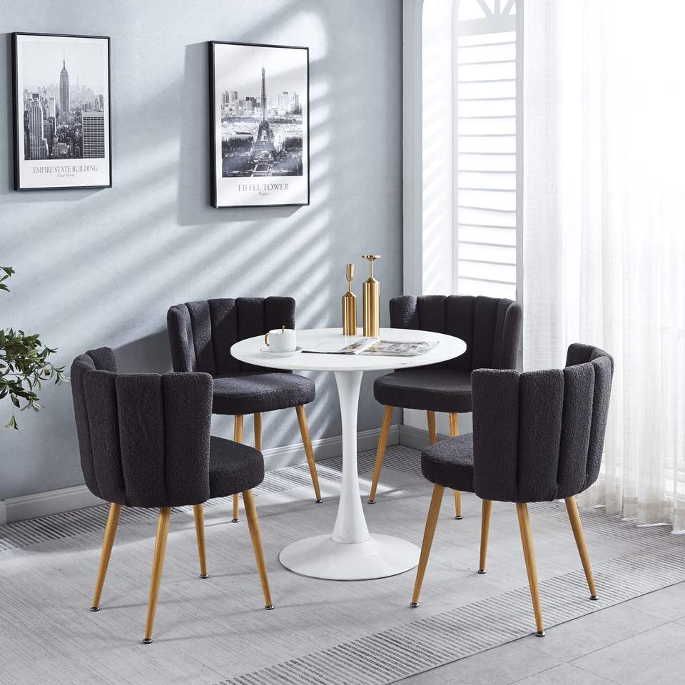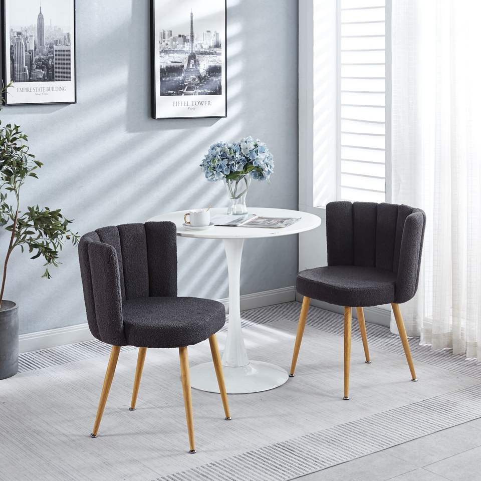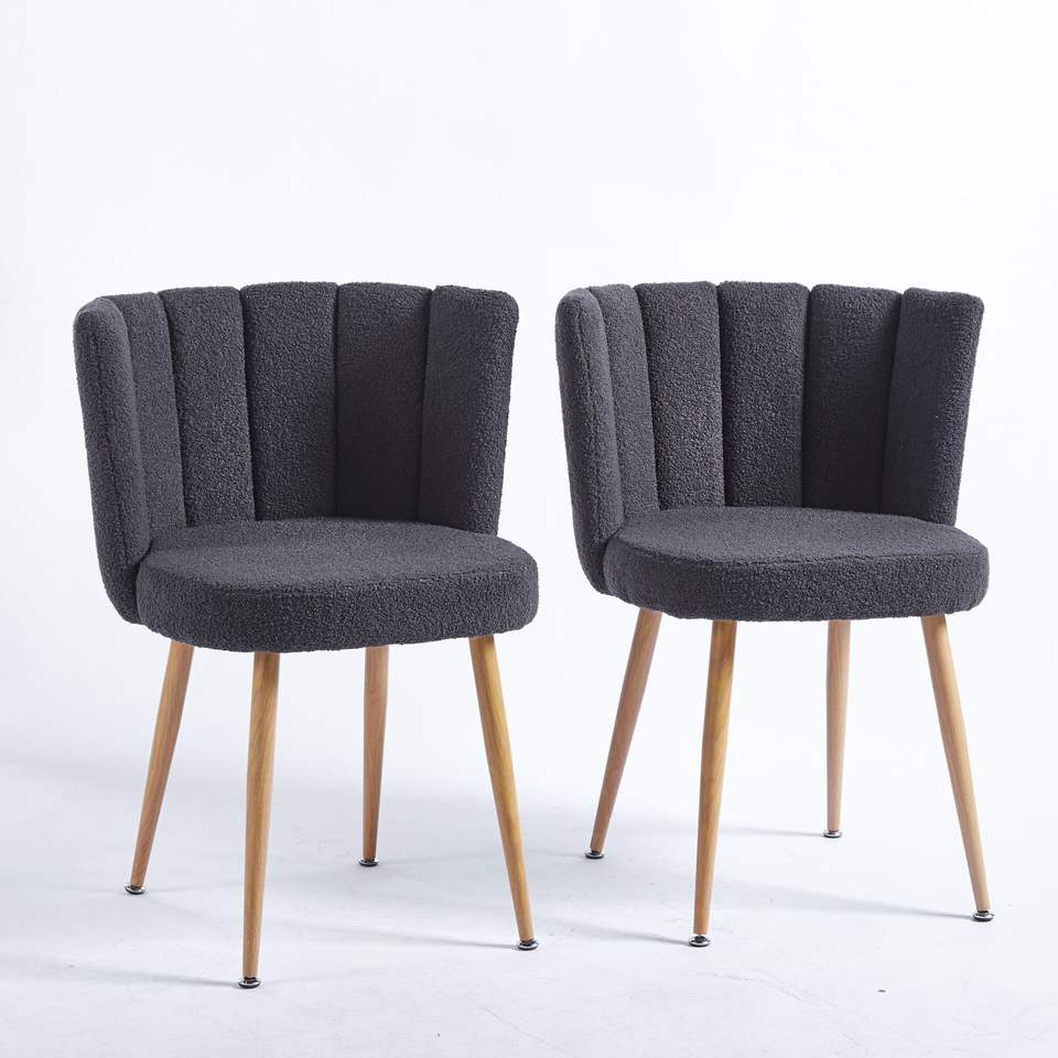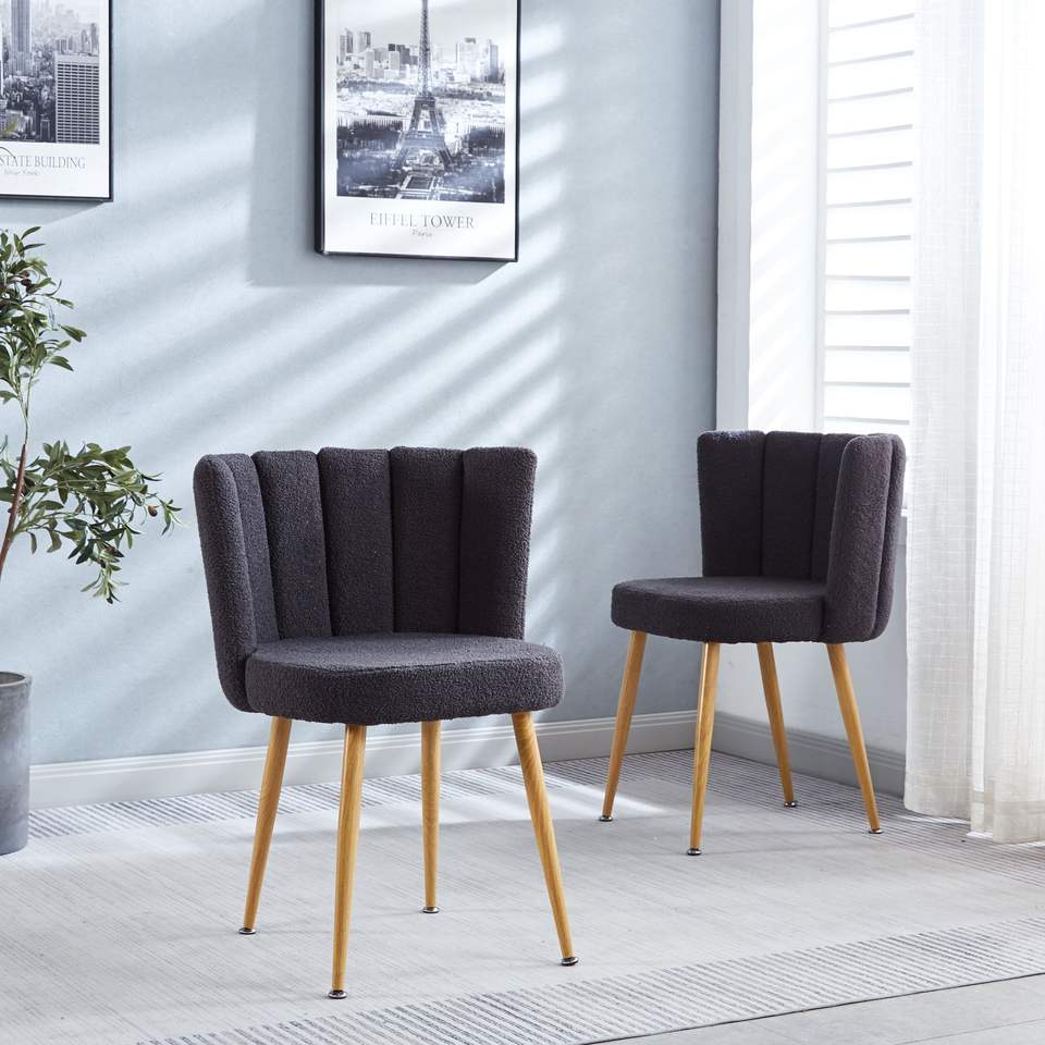 Set di 2 Sedie da Pranzo Moderne Grigie con Gambe in Ferro Color Legno, Cuscini a Pelo Corto e Schienale Confortevole