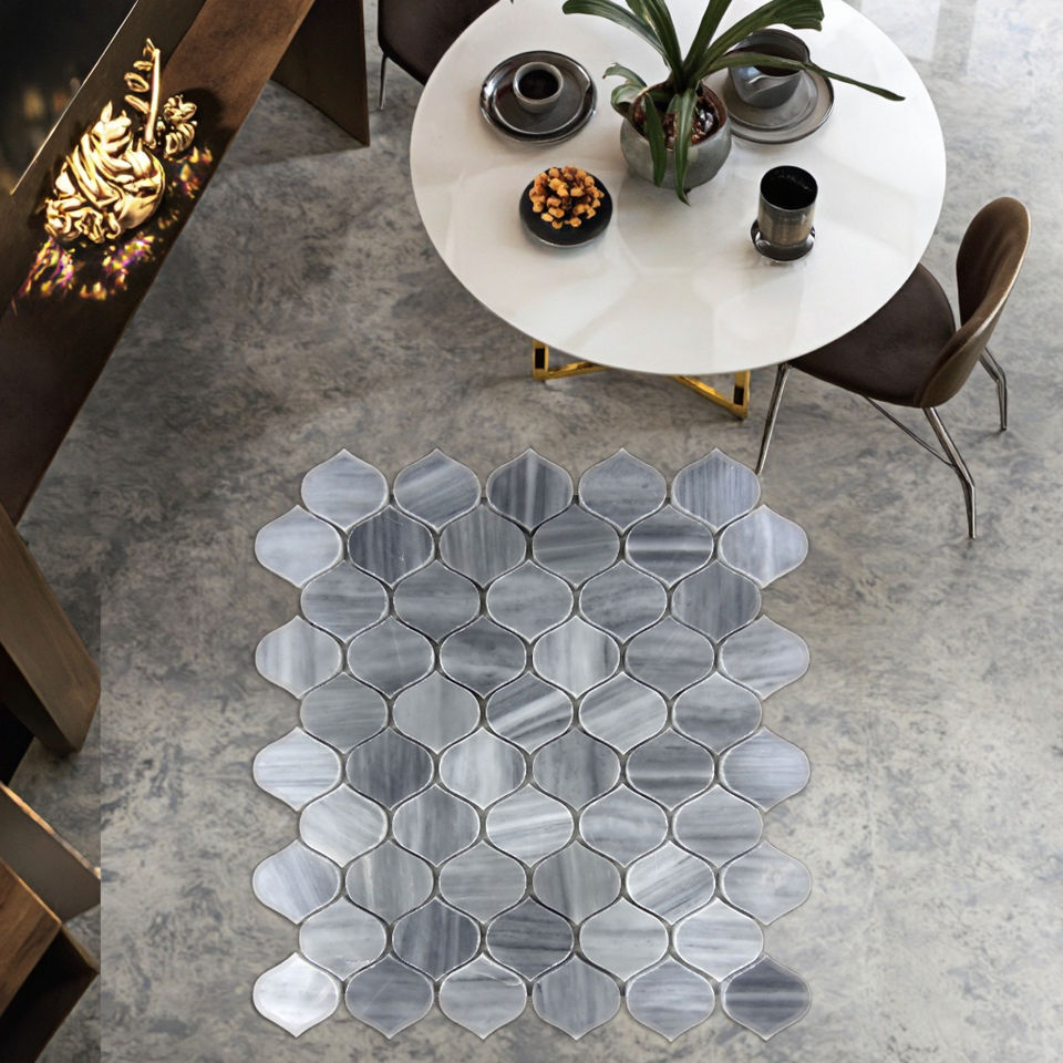 Modern Gray Marble Mosaic Floor Tile Peach Shaped Beautiful for Bathroom Polished Interior Background for Villa Dining Indoor