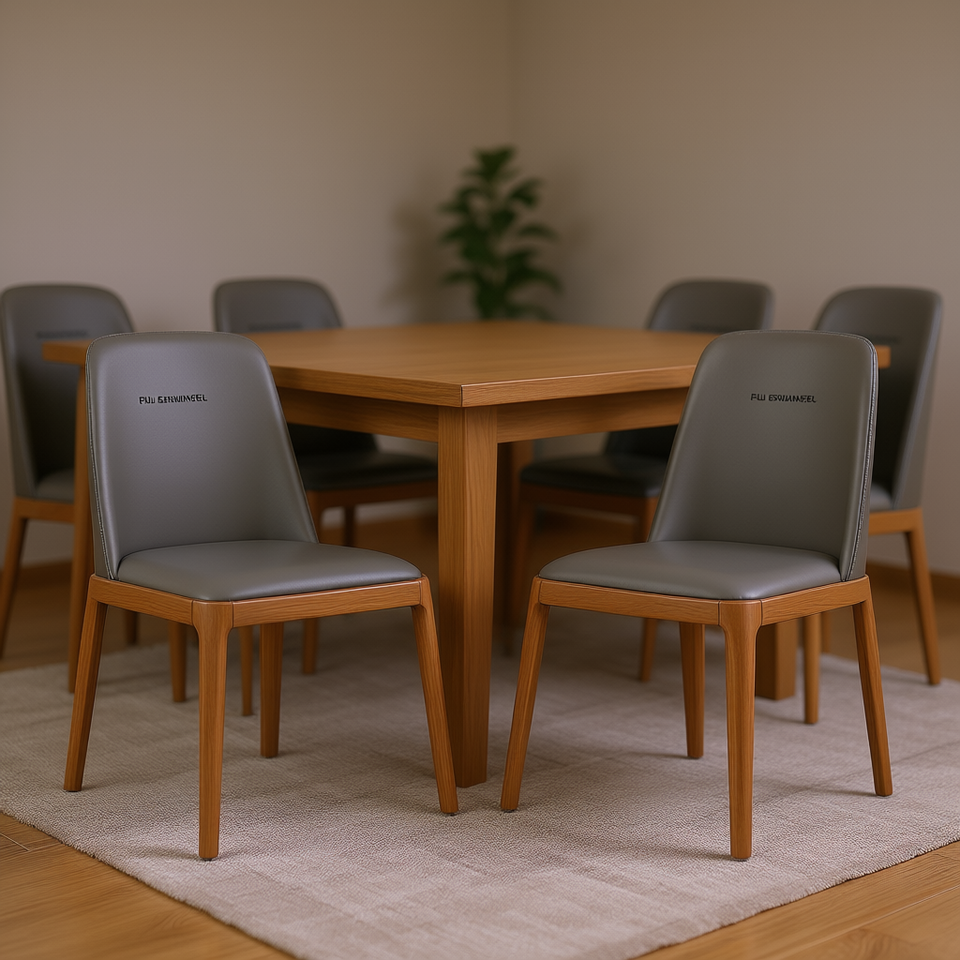 Sedia da pranzo moderna in similpelle grigia con gambe in legno, struttura in legno massello imbottita per l'arredamento della sala da pranzo di casa