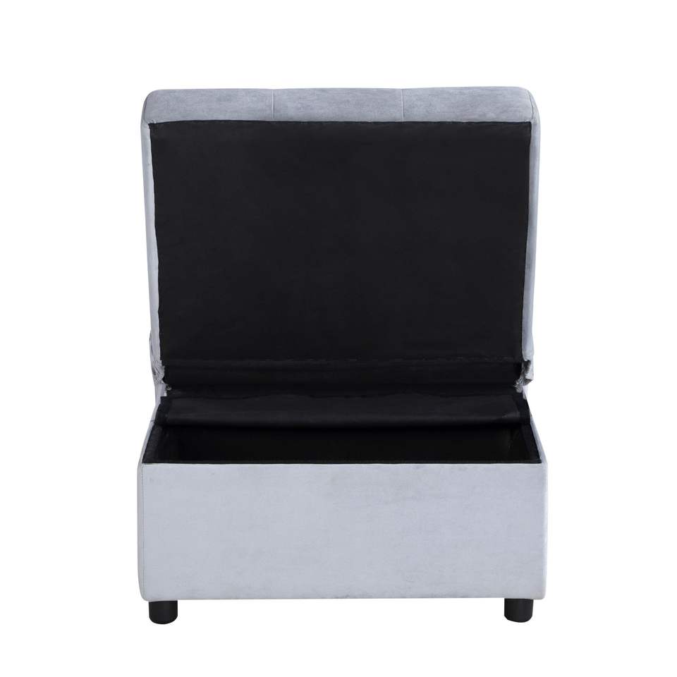 Moderna Panca Contenitore in Velluto Grigio Trapuntato con Sollevamento e Contenitore, in Legno Massello, Convertibile in Poltrona e Letto Estraibile, Arredamento Divano Letto