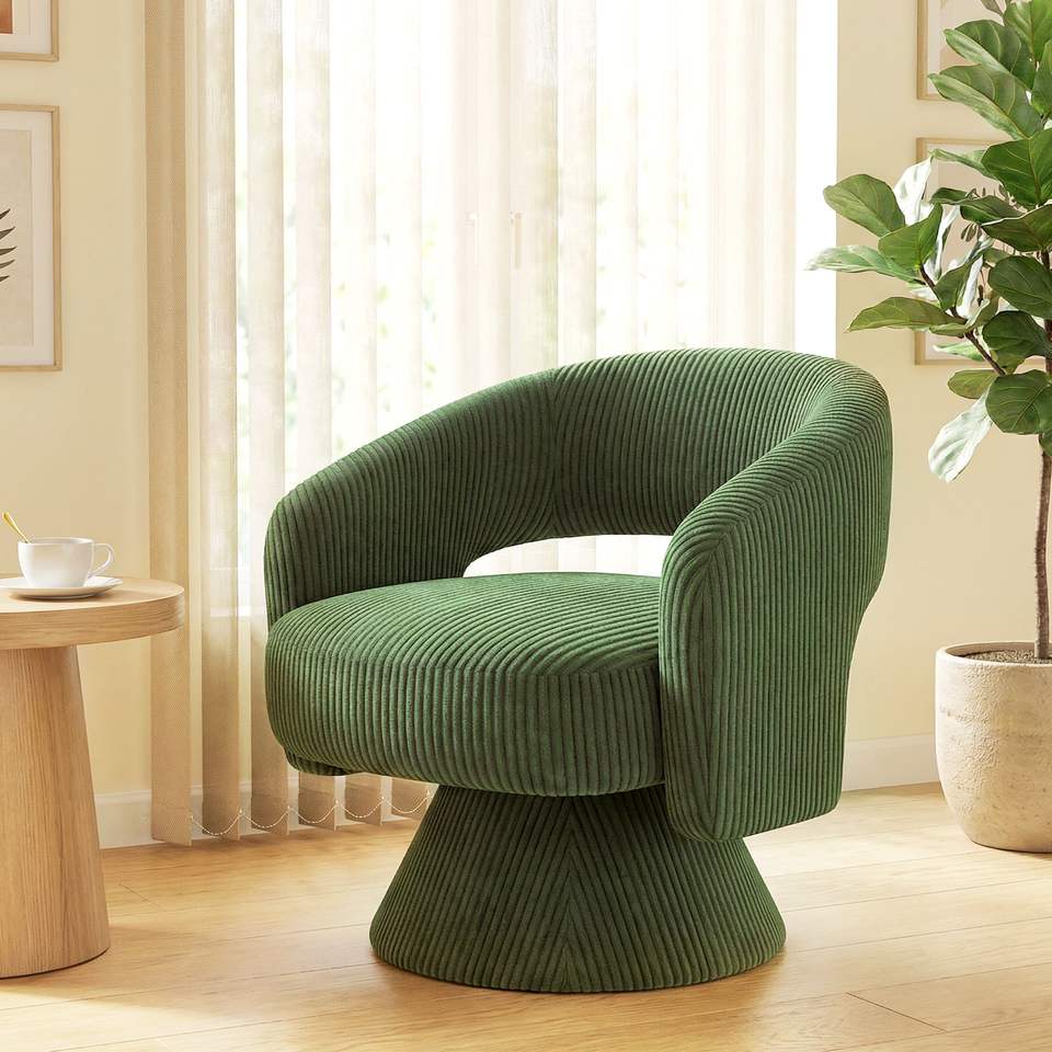 Poltrona Girevole Moderna Verde con Imbottitura Spessa, Sedia Imbottita per Soggiorno, Comoda per la Lettura
