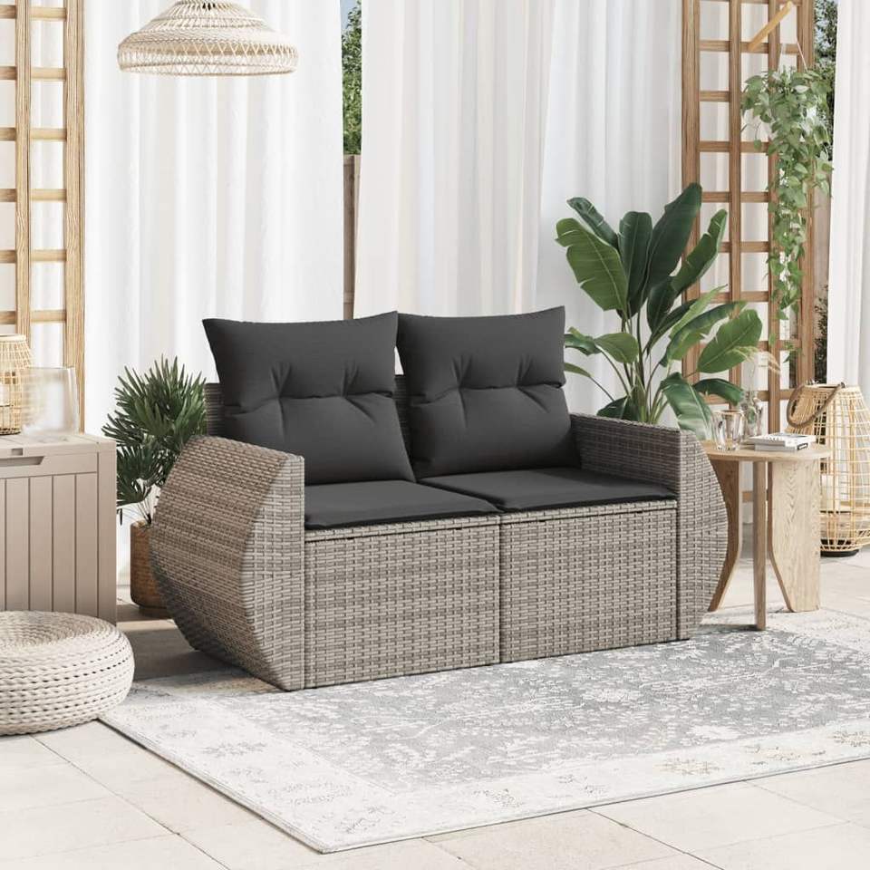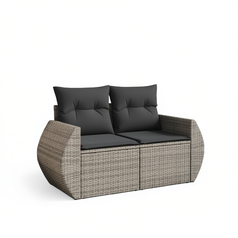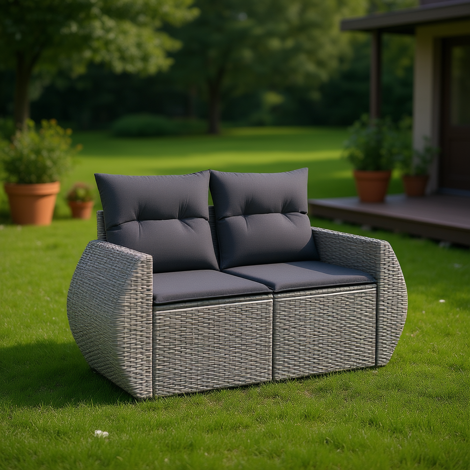 Modern Grey Pe Rattan Garden Sofa Two Seat Outdoor Furniture With Waterproof Cushions Contemporary Design