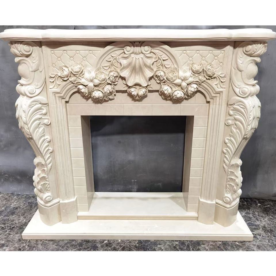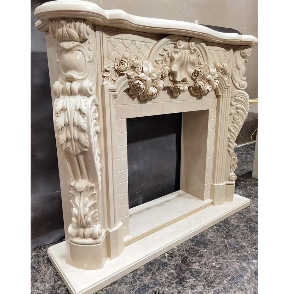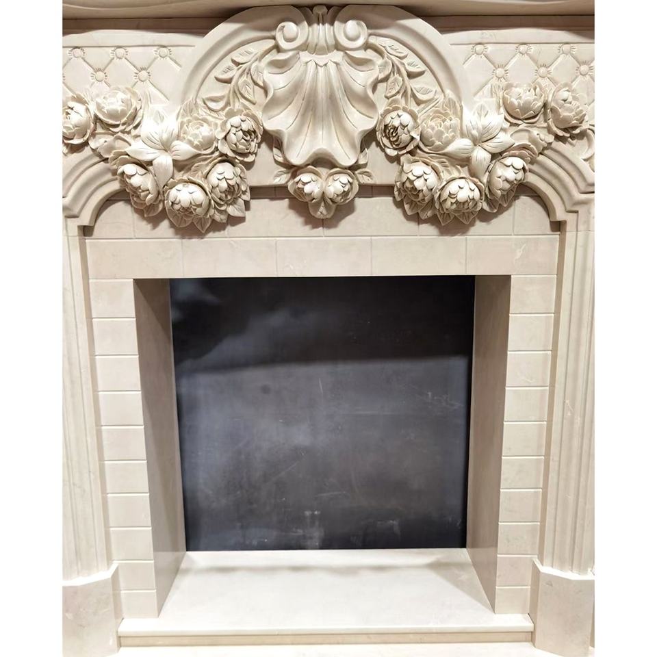 Modern Hand Carved Natural Stone Marble Carving Fireplace Surround Interior Decorations Marble Fireplace Mantel for Home