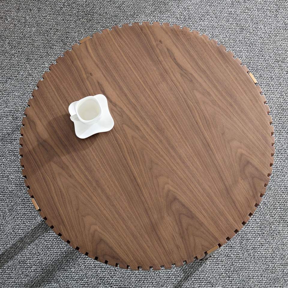 Tavolino da Caffè Rotondo Artigianale Moderno da 31,5 Pollici con Robusto Piedistallo in Noce per Soggiorno, Ideale per Piccoli Spazi