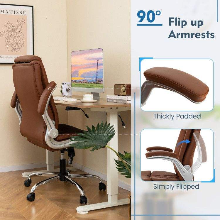 Sedia da Ufficio Moderna in Pelle PU Regolabile in Altezza con Funzione Dondolo