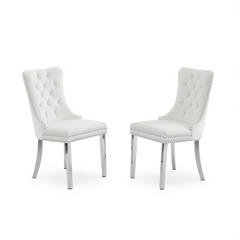 Modern Velvet Upholstered Dining Chair Set 2 Chrome Legs Contemporary Design Home Furniture
