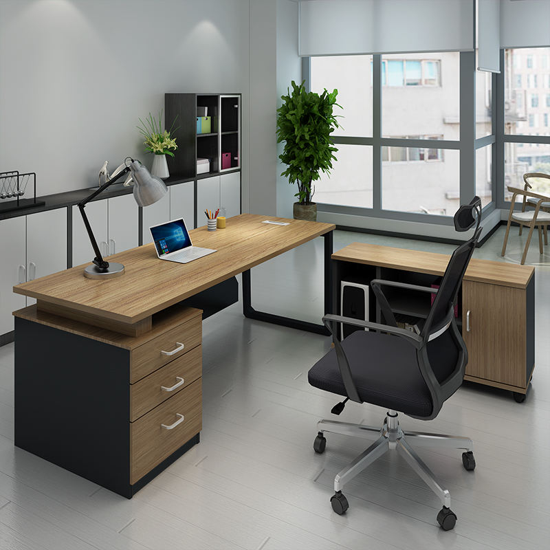 Moderno di alta qualità durevole semplice struttura modulare scrivania con ferro estensibile caratteristiche legno combinazione armadietto laterale uso ufficio