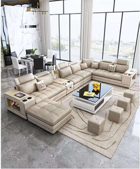 Modern High Quality L-Shape Fabric Sectional Sofa High-Design Living Room Furniture Hotels and Villas U-shape Couch Usb Charger