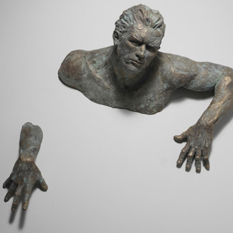 Modern Home Decor Metal Art Abstract Life Size Wall Man Statue Bronze Matteo Pugliese Sculpture for Sale