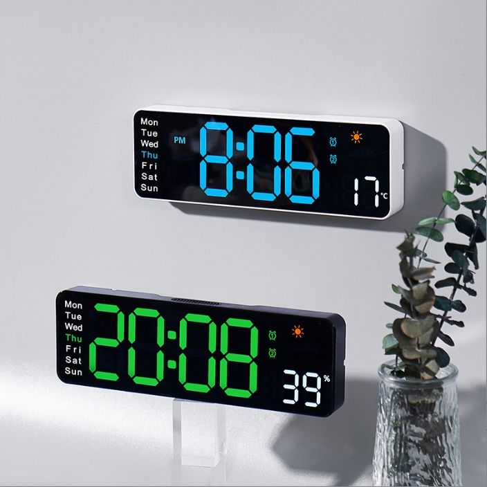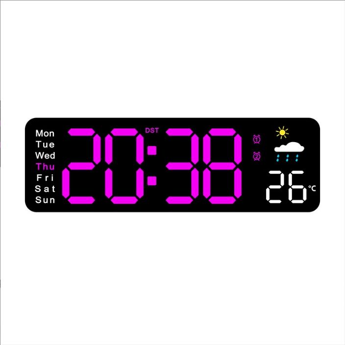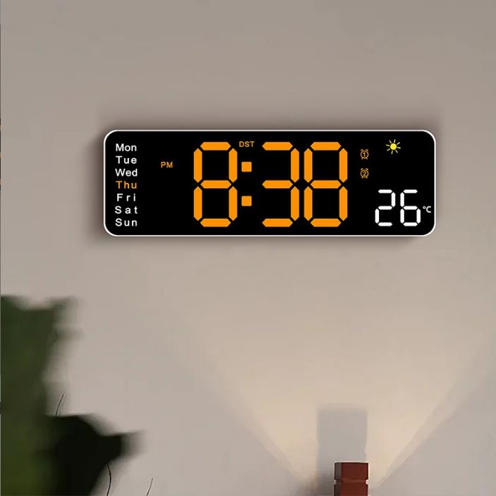 Orologio da Parete Digitale LED Moderno Multifunzionale con Luminosità Regolabile, Timer e Display Meteo
