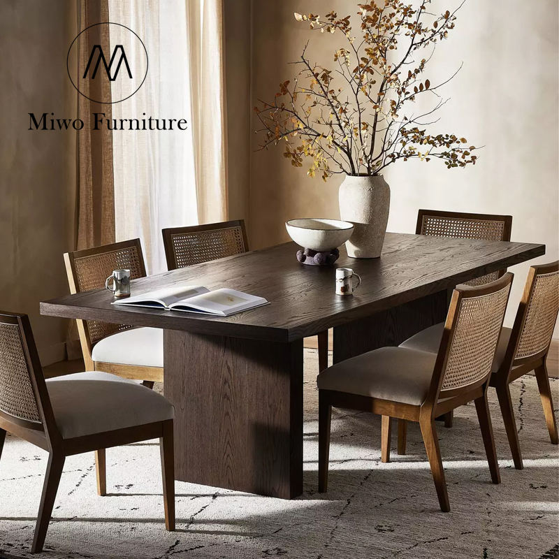 Moderna casa sala da pranzo mobili 8 6 posti lungo rettangolare massiccio pannello spesso di quercia legno massello noce scuro macchia tavolo da pranzo
