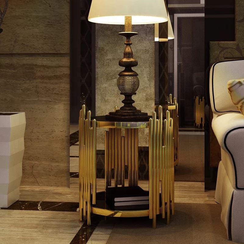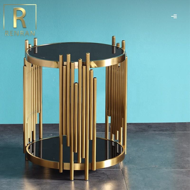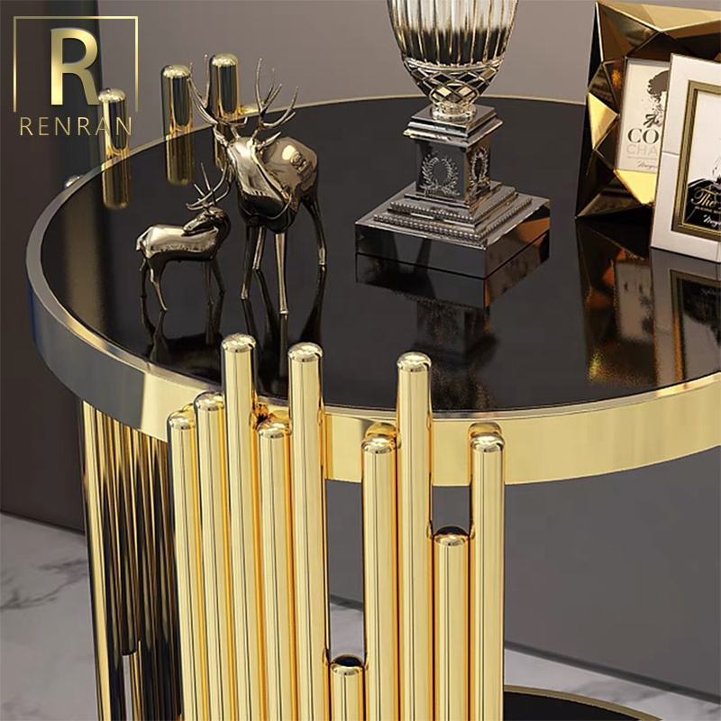 Mobili per la casa moderni in acciaio inossidabile spazzolato oro con tavolino in vetro tavolino tavolino da caffè