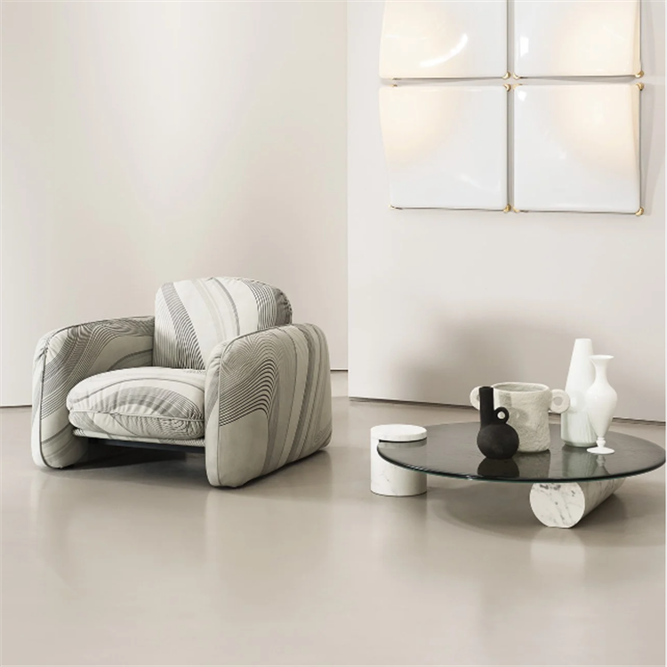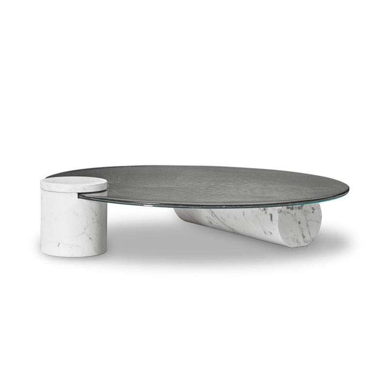 Mobili per la casa moderni design italiano base in marmo naturale rotondo ondulazione dell'acqua tavolino rotondo con piano in vetro temperato