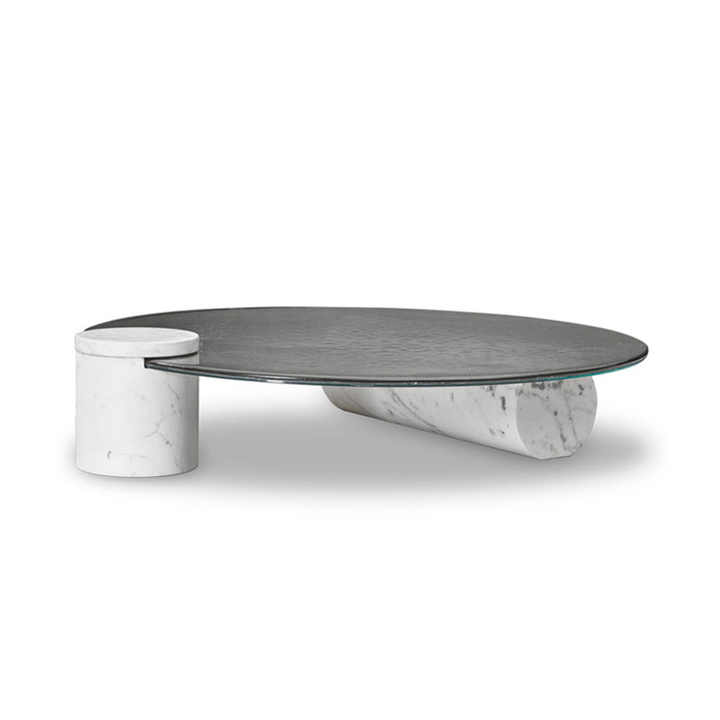 Modern home furniture Italian design natural marble base round water ripple tempered glass top round coffee table