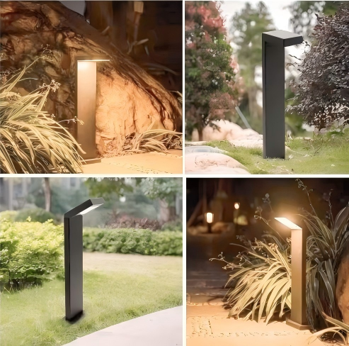 Paletto Luminoso Moderno a LED IP65 in Alluminio con Corpo Quadrato per Illuminazione Esterna di Paesaggi, Hotel e Prati