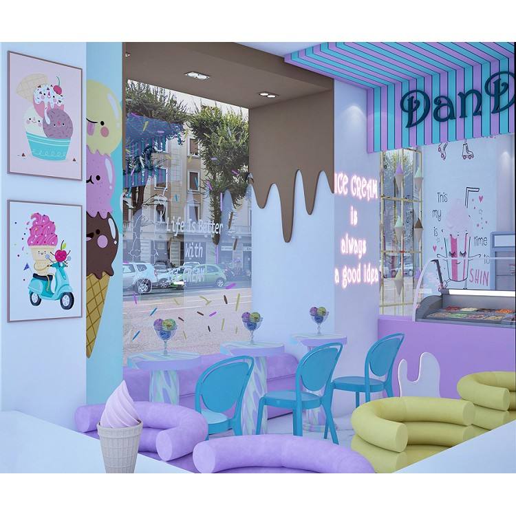 Modern Ice Cream Shop Interior Design Display Counter Yogurt Shop Soft Ice Cream Shop Design