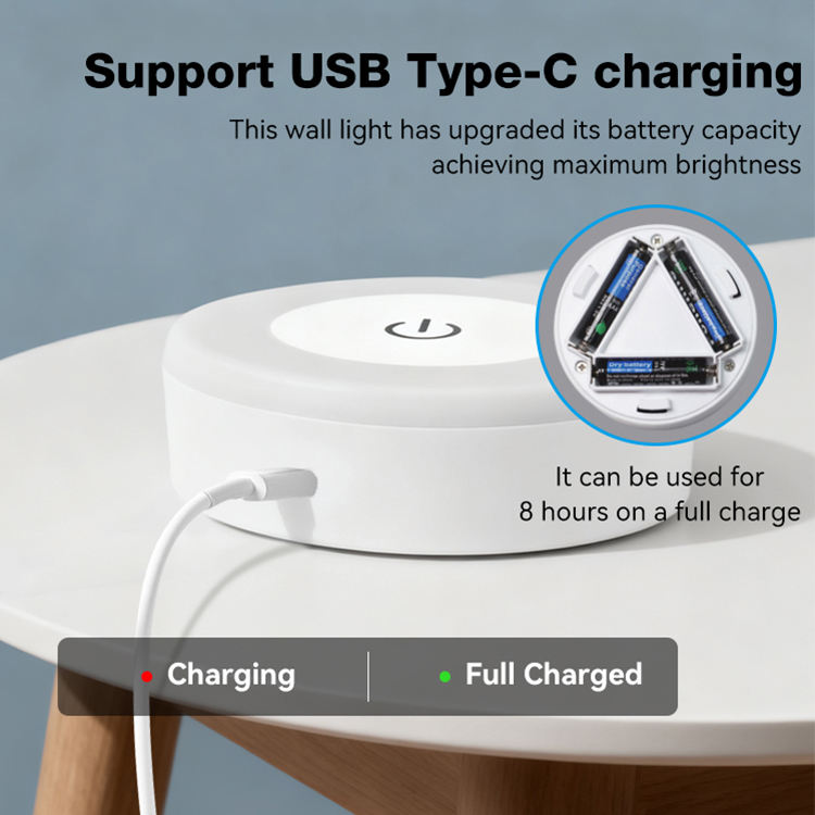 Lampada da parete magnetica LED ricaricabile con sensore touch, 3 modalità per camera da letto e ambienti interni