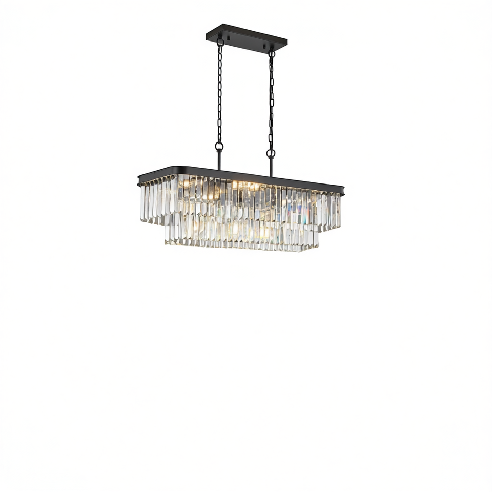 Modern Industrial Crystal Chandelier Rectangular Black Iron E12 LED Ceiling Light for Living Room Kitchen