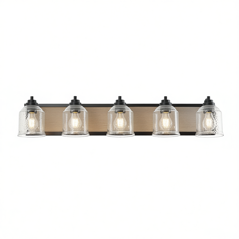 Modern Industrial 40" Farmhouse Vanity Light 5-Light Black Iron Clear Seeded Glass Bathroom Wall Sconce