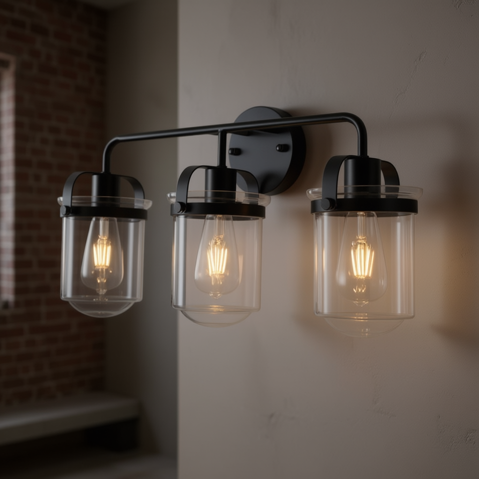 Modern Industrial Wall Sconces 3 Light Clear Glass Shade E26 Socket Indoor Lighting for Bathroom Living Room Bedroom Kitchen