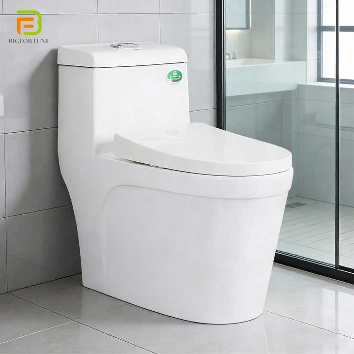 Moderni WC con Scarico a Sifone, Toilette Allungata in Ceramica, WC Monoblocco Sifonico per Hotel