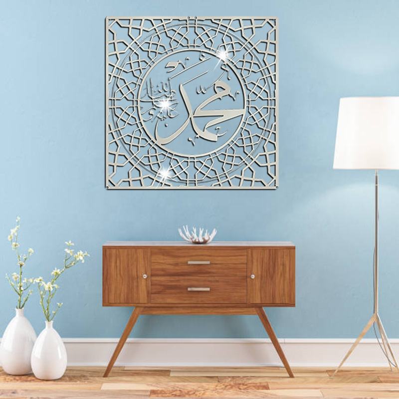 Modern Islamic Wall Art Muhammed Metal Islamic Calligraphy for Living Room Eid Muslim Gift Ramadan Decorations Allah Wall Decor