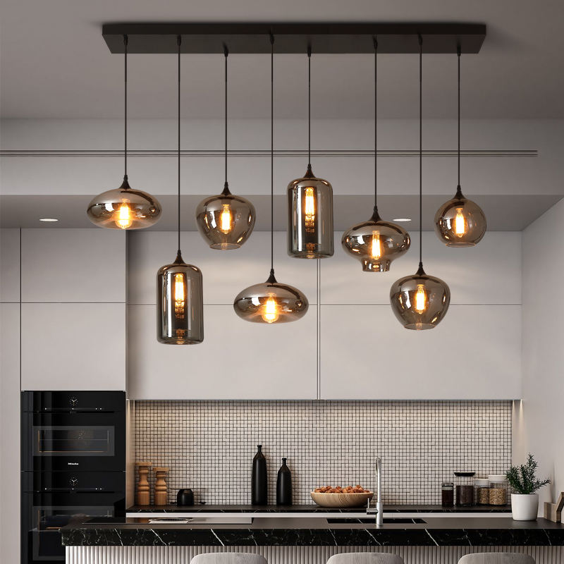 Lampadario a sospensione sfere vetro grigio fumo nordico, 85–240V, 3000–6000K, vetro/cristallo/acrilico/inox, per isola/hotel