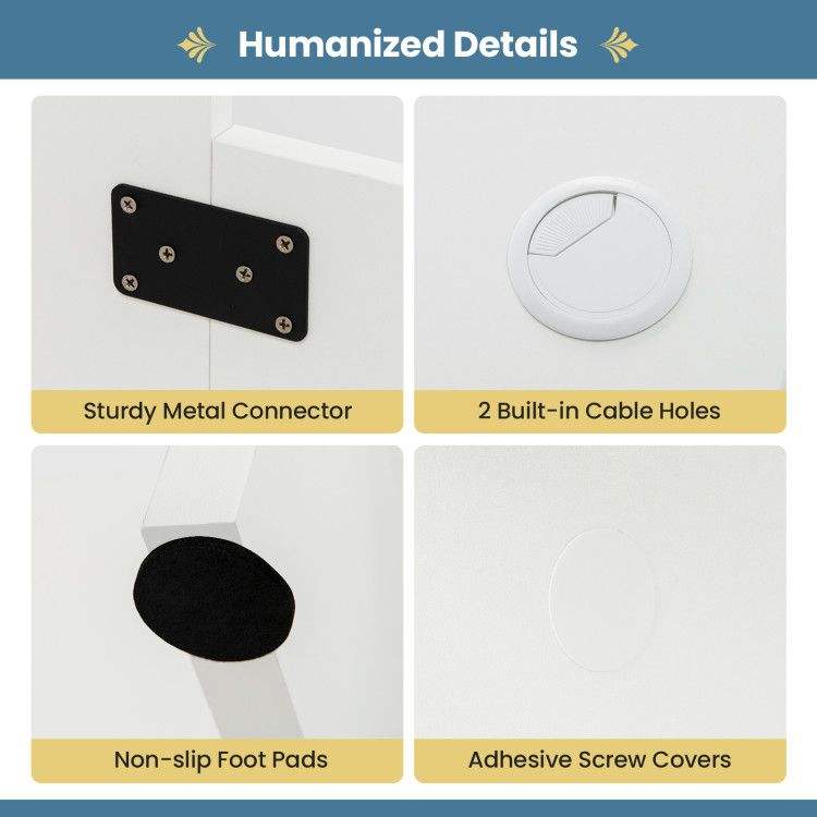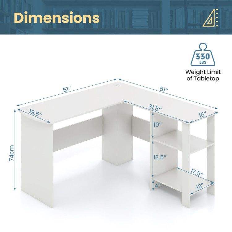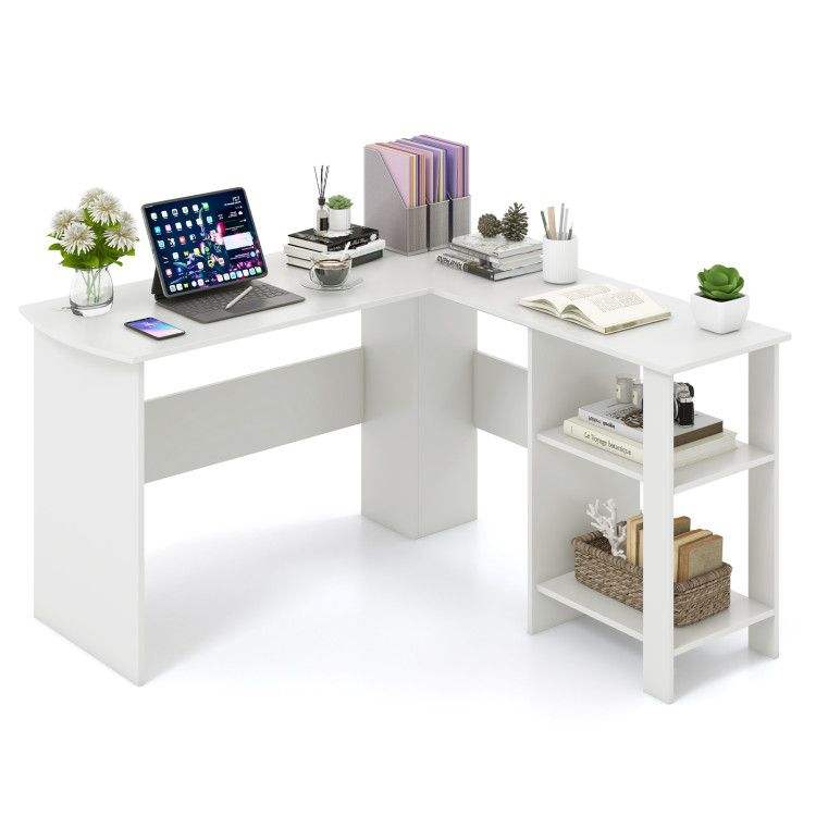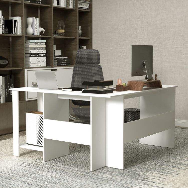 Scrivania Moderna a L per Computer, Design Ampio con 2 Fori per Cavi e 2 Ripiani Portaoggetti