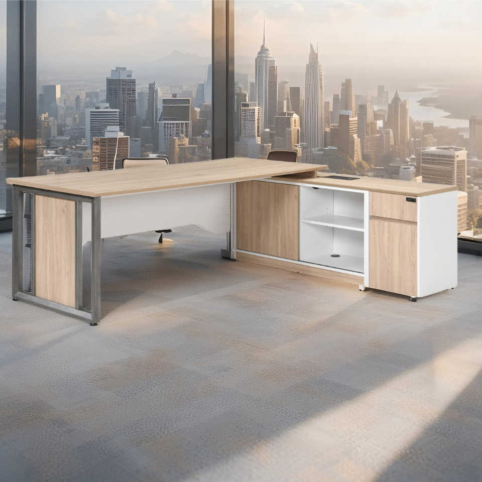 Modern L-Shaped Executive Desk Wood & White Finish with Integrated Storage for Computer Use