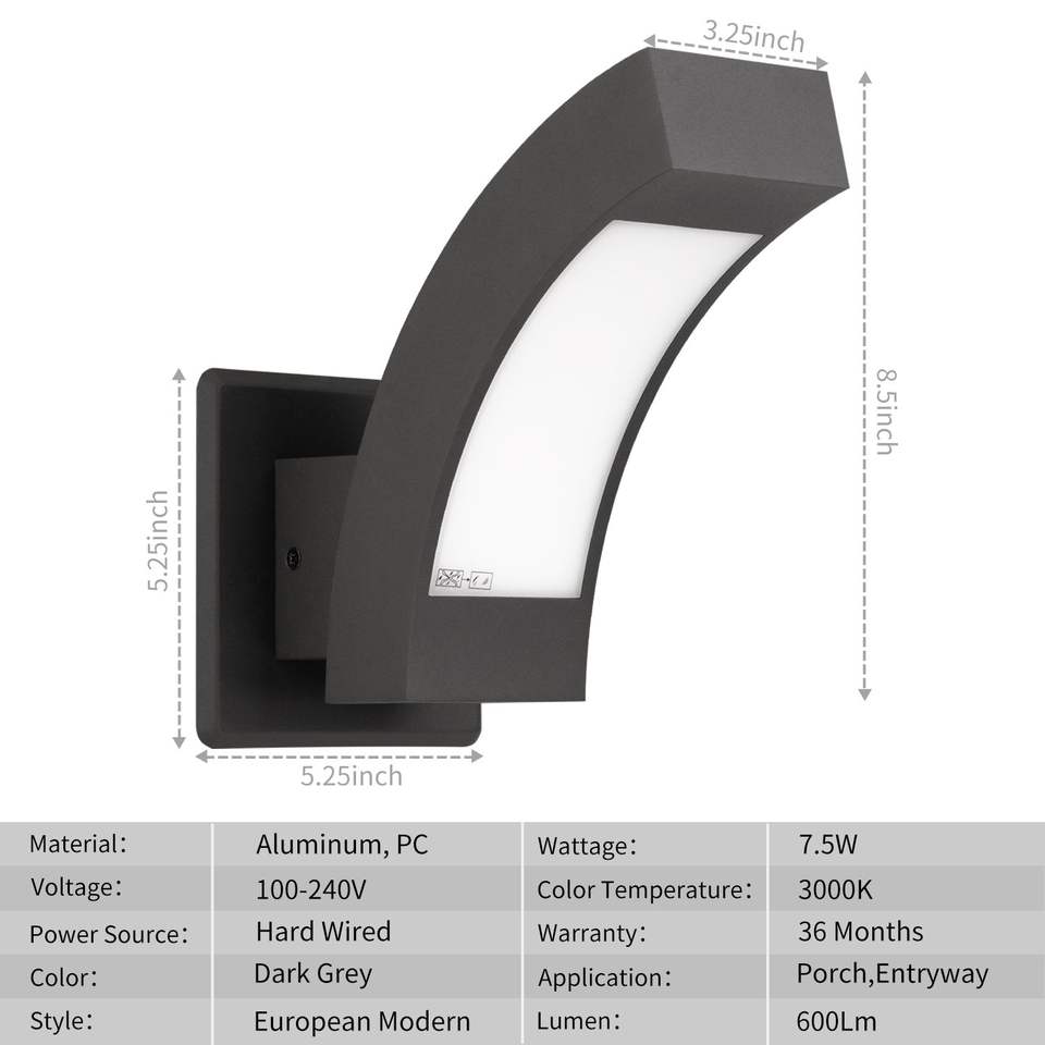 Applique da Esterno Moderna a LED in Alluminio, Impermeabile IP54 per Patio, Portico, Parete, Corridoio, Casa