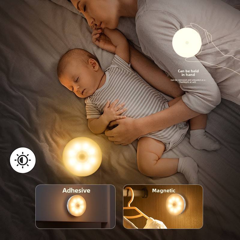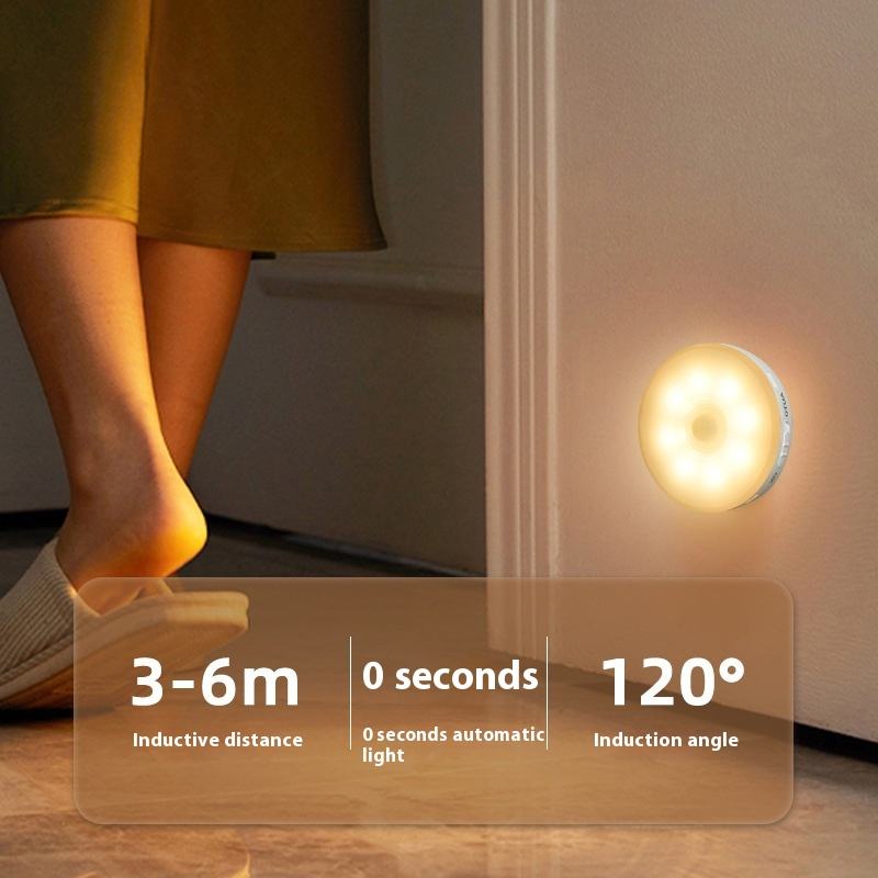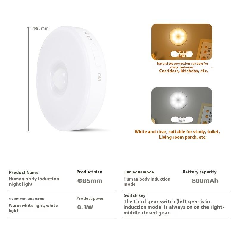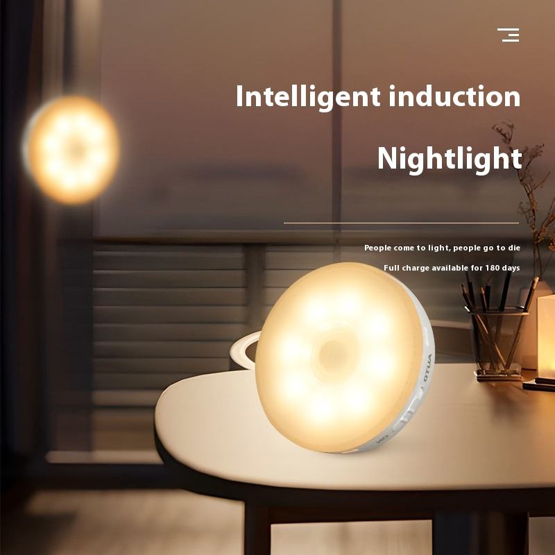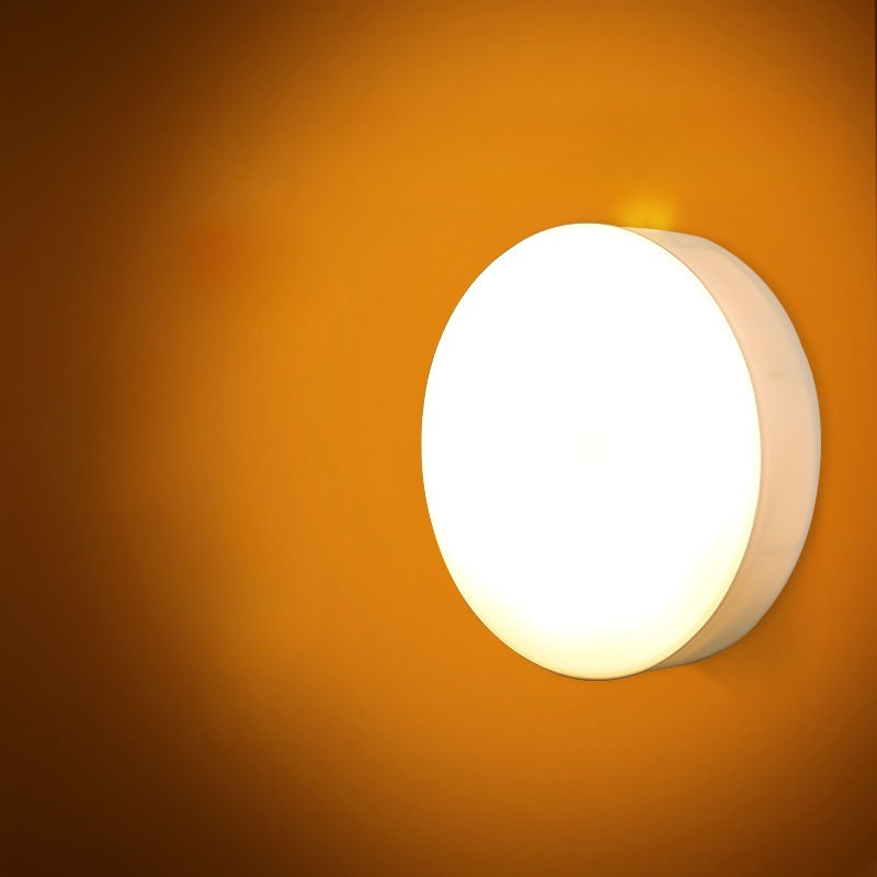 Modern LED Round USB Rechargeable Motion Sensor Night Light with Magnetic Switch for Bedroom Kitchen Wine Cabinet Wardrobe