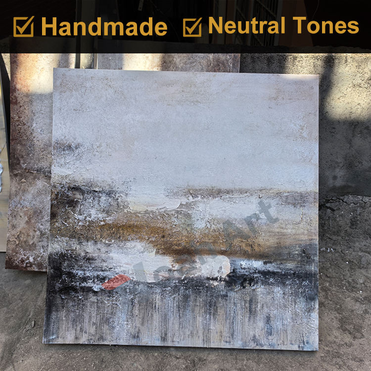 Arte astratta della parete per il soggiorno dipinti su tela neutra acrilica disegnata a mano opera d'arte del paesaggio moderno