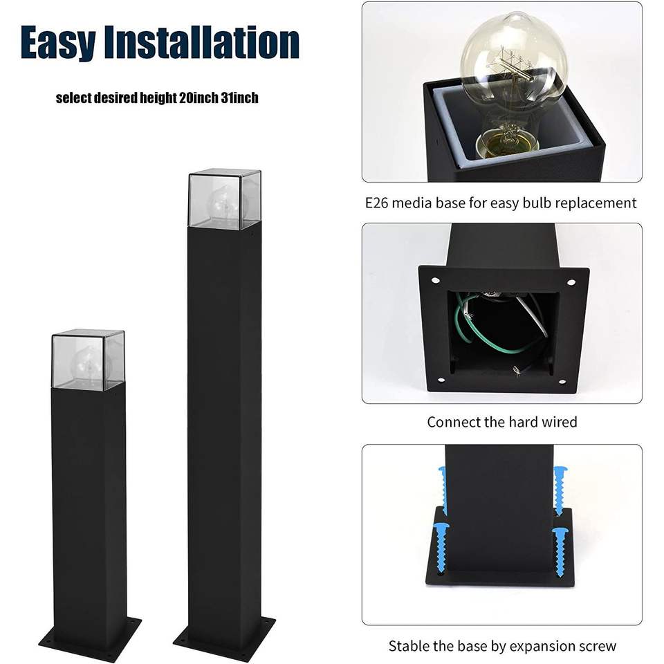 Luci Moderne per Sentieri e Vialetti 12226 con Cavo e Base per Lampadina E26 - Lampadina Non Inclusa