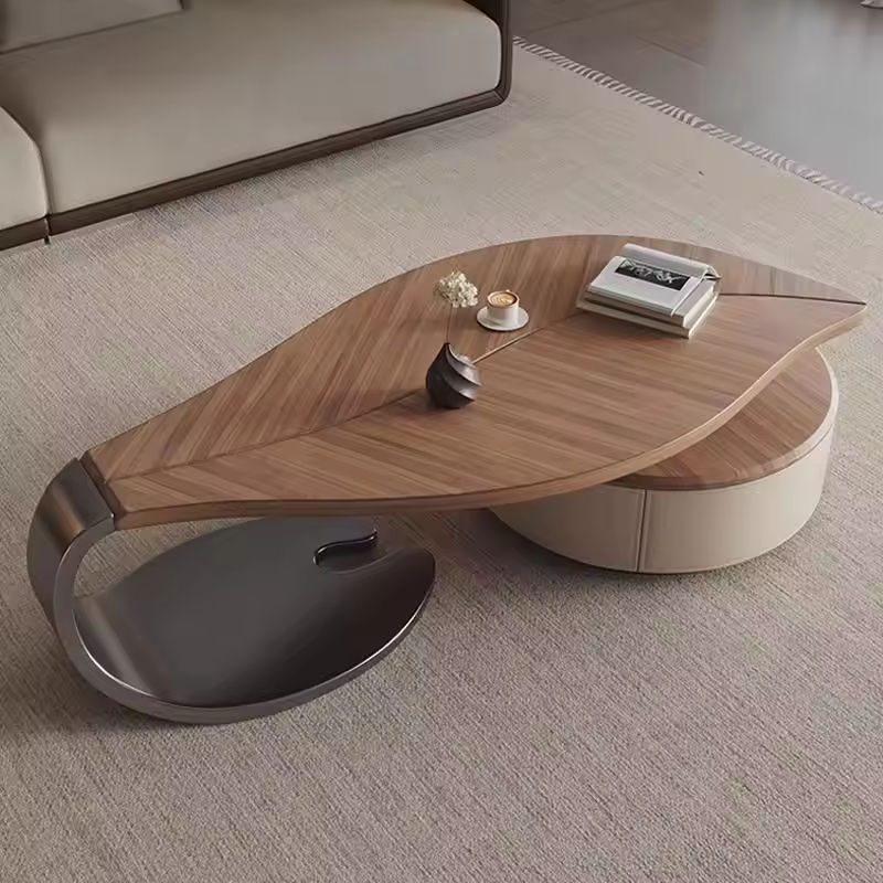 Tavolino da Caffè Moderno a Forma di Foglia in Impiallacciatura di Noce, Lusso Leggero per Soggiorno, Nuovo Design Speciale