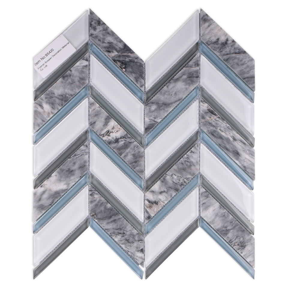 Mosaico di marmo naturale in pietra blu bianco grigio blu bianco in vetro naturale a forma di foglia per l'arredamento della camera d'albergo