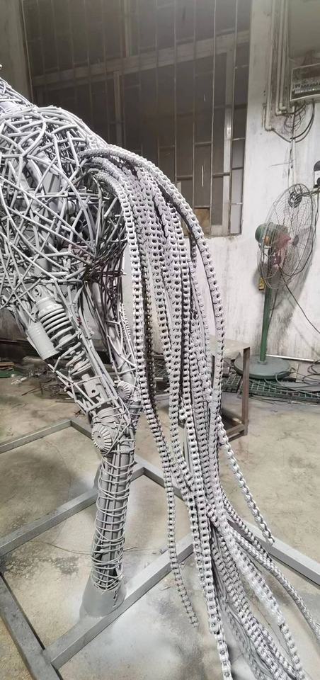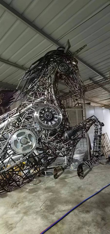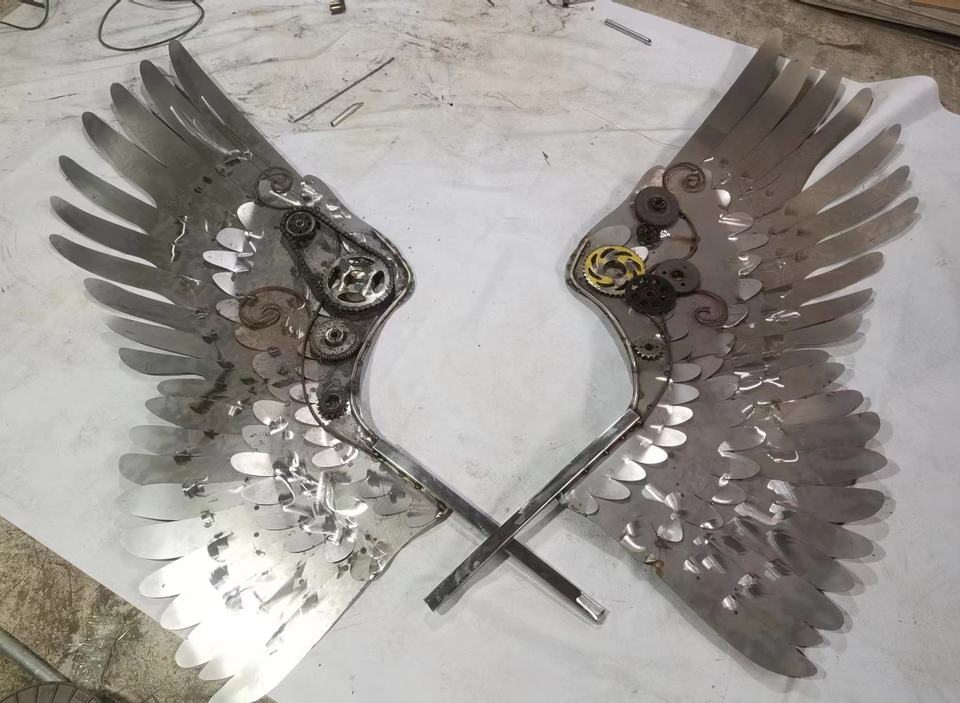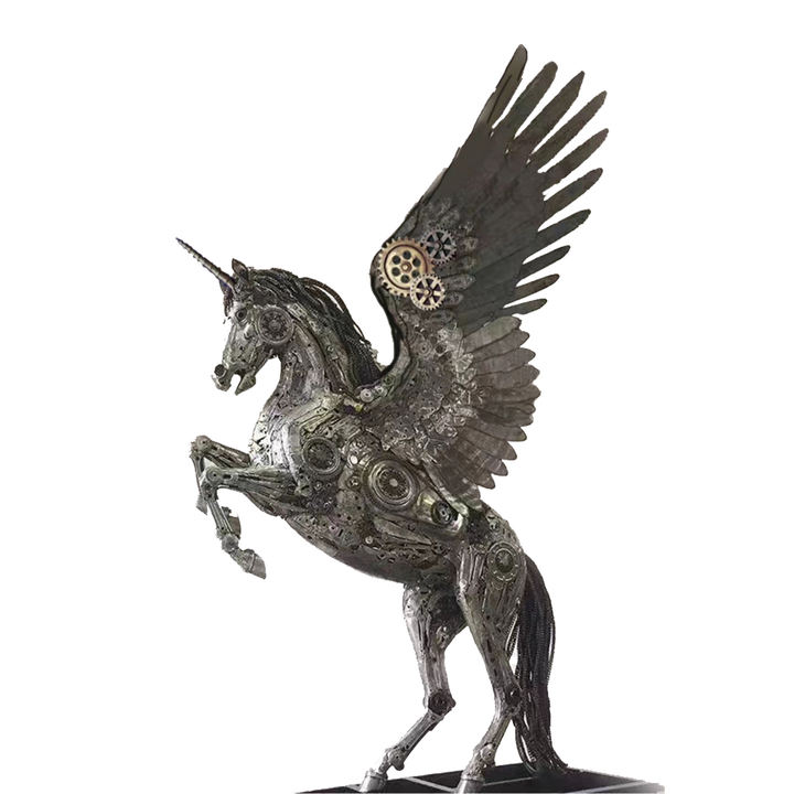 Statua Moderna a Grandezza Naturale di Cavallo Alato in Acciaio Inossidabile per Giardino Esterno, Scultura in Stile Fantascienza