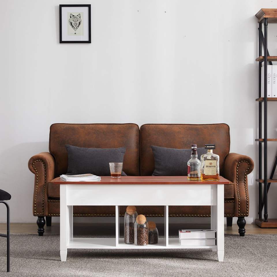 Tavolino da Caffè Moderno con Piano Sollevabile e Vano Nascosto, Arredamento Marrone e Bianco con Elegante Funzione di Sollevamento del Piano