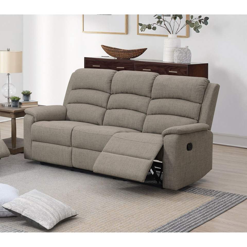 Divano Reclinabile Moderno in Tessuto Marrone Chiaro, Poltrona in Tessuto di Iuta con Movimento Manuale per Arredamento Soggiorno