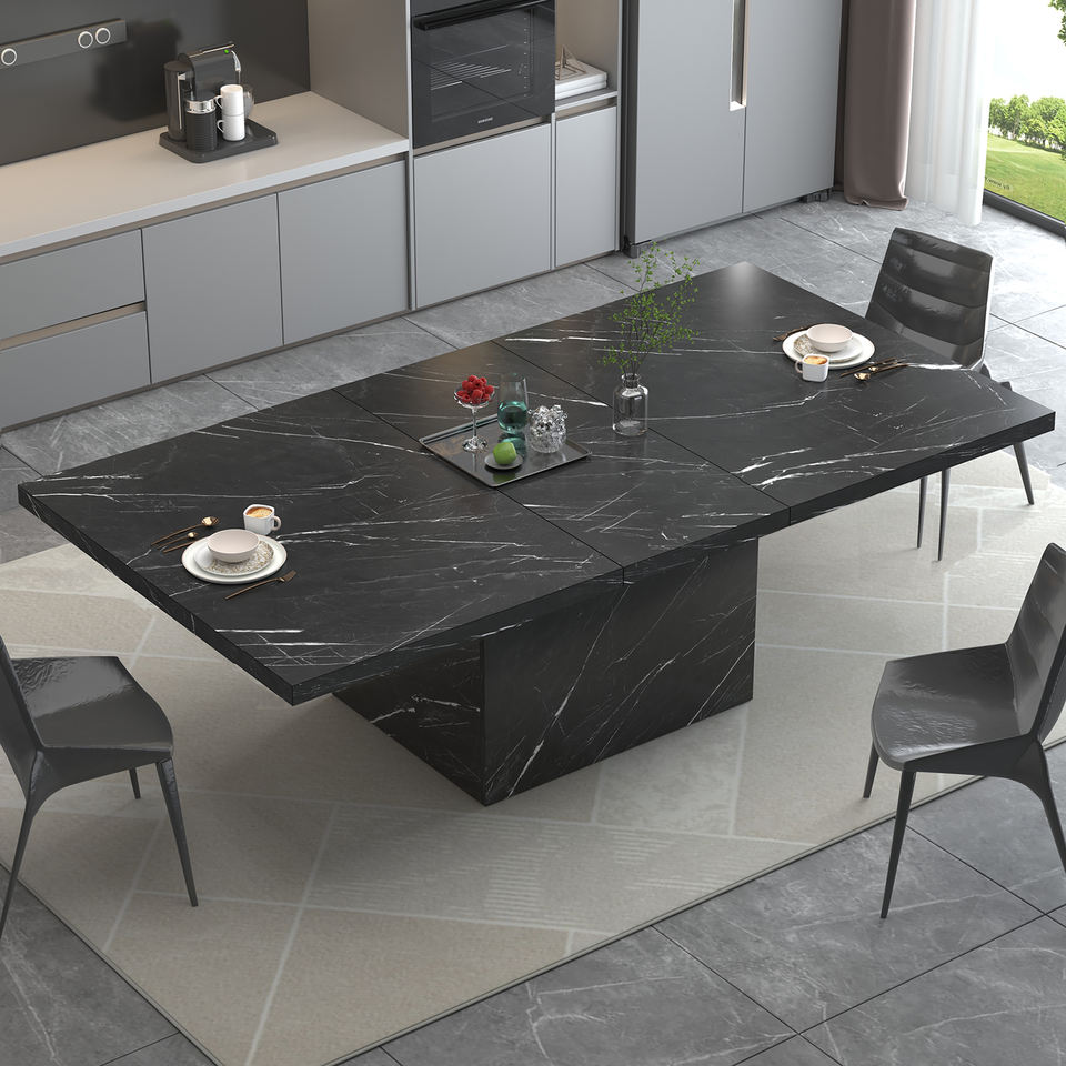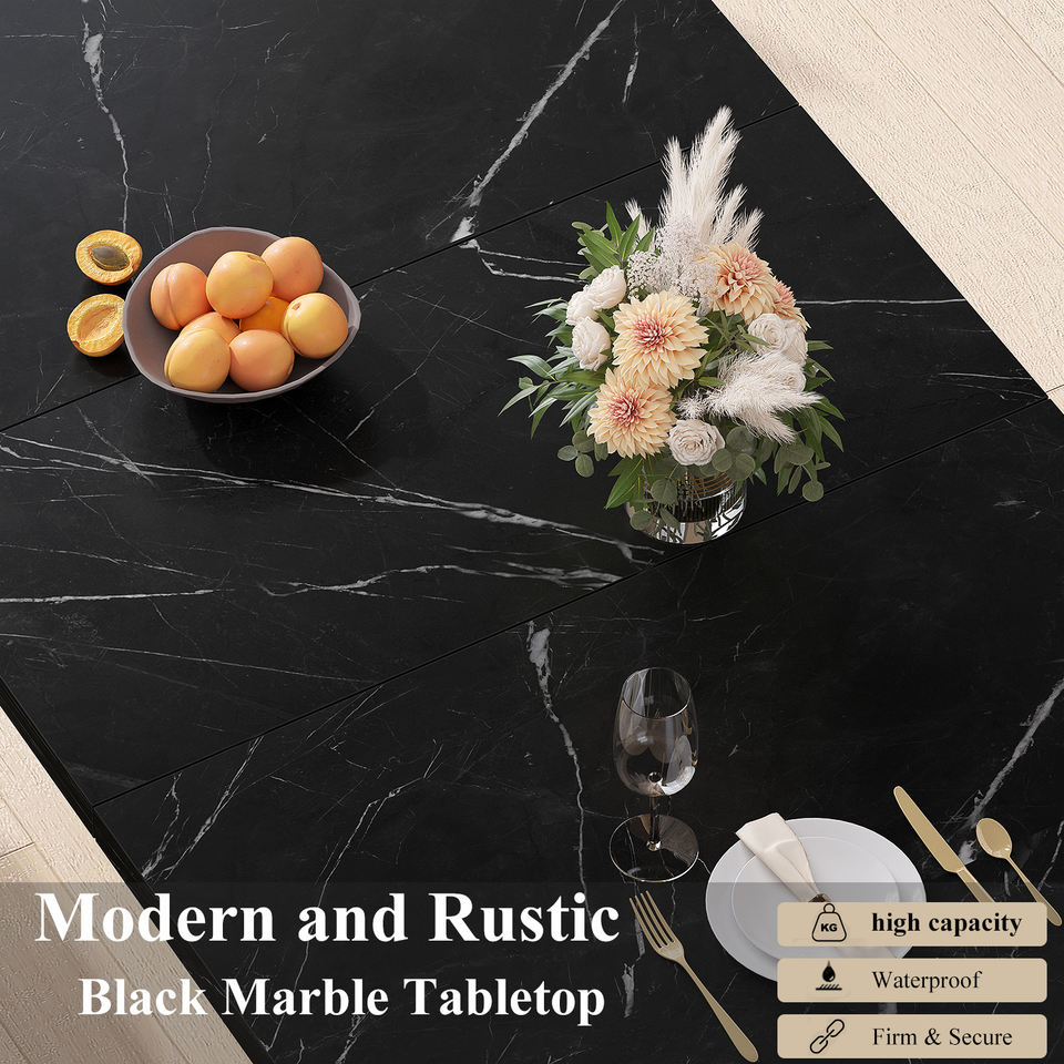 Tavolo da Cucina Rettangolare Moderno di Lusso Leggero Multi-Misura con Piano in Finto Marmo Nero per Sala da Pranzo