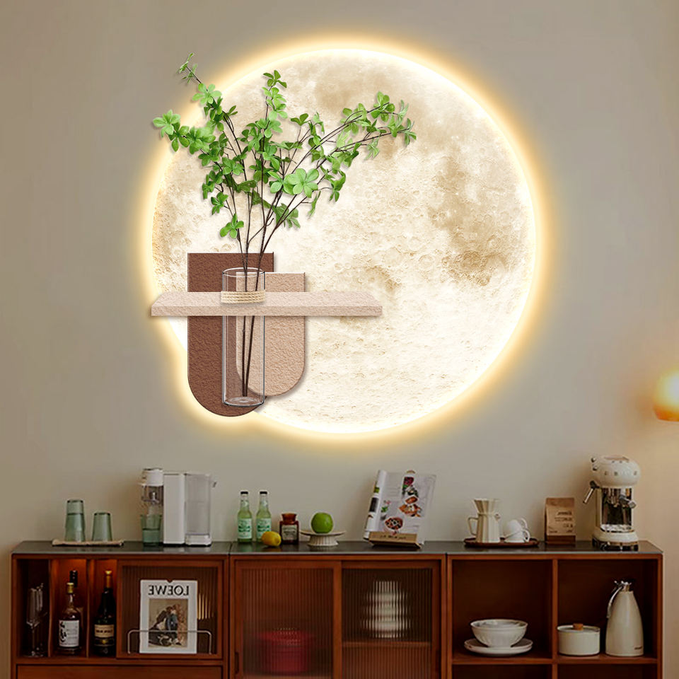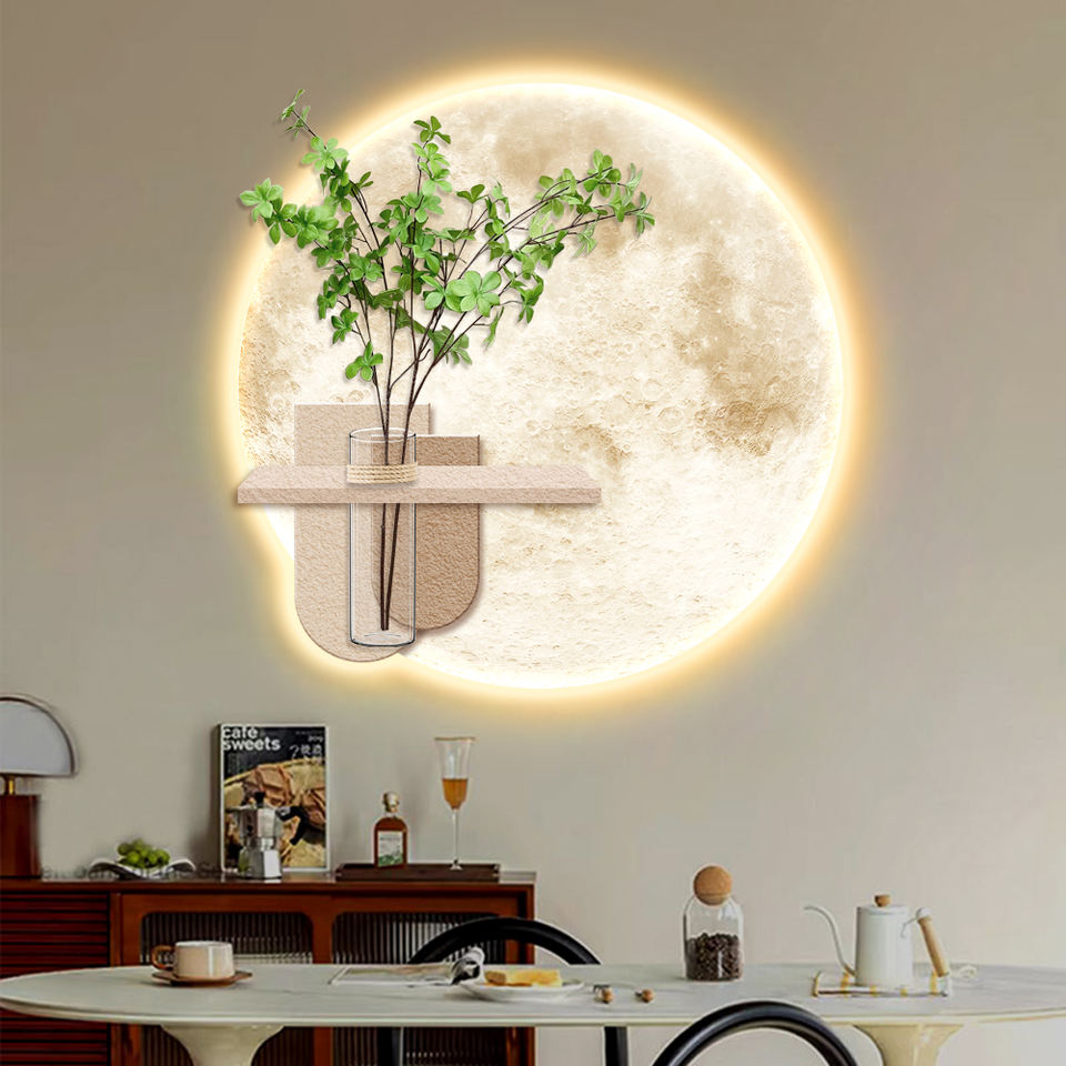 Modern Living Room Background Wall Decorative Art 3D Crystal Porcelain Painting Hydroponic Green Plant LED Light Painting
